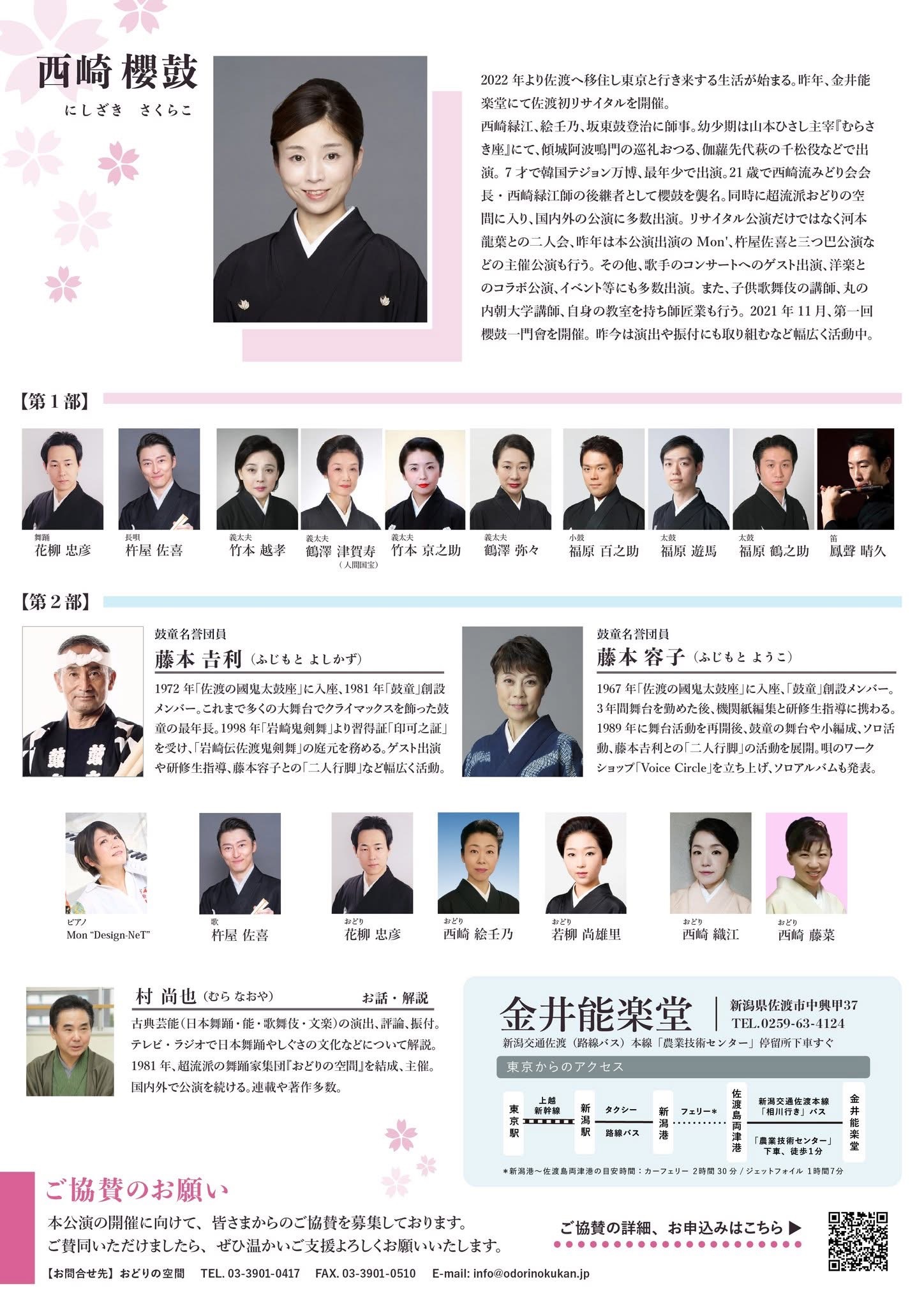 舞踊=西崎絵壬乃・西崎櫻鼓・花柳曄沙代・坂東鼓登治・河本紫葉ほか